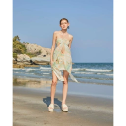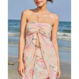 Wildblueyonder - CLOUDLAND TUBE TOP เสื้อเกาะอก มีสายผูกคล้องคอ ชายระบาย ช่วงอกจับเดรฟเป็นริ้วๆ สามารถรูดปรับให้กระชับช่วงอกได้ พร้อมชายระบายปลายแหลม พริ้วๆ ด้านหลังเป็นสม็อค สามารถใส่ ได้ 2 แบบ ปลอยพริ้ว หรือนำผ้าไปผูกด้านหลัง เนื้อผ้า Silk satin พิมพ์ลาย นุ่มลื่น