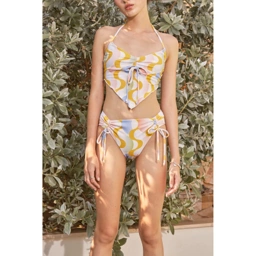 ปริ้นลวดลาย retro บราดีเทลรูดด้านหน้า ตัดต่อผ้าทรงสามเหลี่ยม เพิ่มความเก๋ มีเชือกเป็นสายผูกคล้องคอ พร้อมฟองน้ำและซับในทั้งตัว กางเกงมีดีเทลรูด2 ตำแหน่ง medium cut เว้าปกติ เก็บสัดส่วนได้ดี.