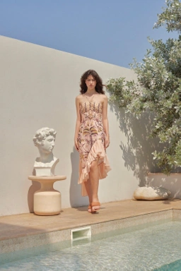 ดีเทลจับรูดช่วงหน้าอก คัตติ้งเข้ารูปเสริมสรีระ เนื้อผ้าซาตินสวมใส่สบาย ช่วงชายเดรสตัดต่อผ้าชีฟองระบาย และ แทรกพลีทเป็นเลเยอร์ มีความพริ้วไหว ด้านหลังสามารถปรับขยายได้ให้พอดีกับช่วงตัว