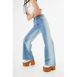 กางเกงยีนส์ทรงกระบอกขากว้างเอวสูงเก็บทรงดีมากใส่แล้วหุ่นดีสุดๆ มีทั้งหมด 2 สี