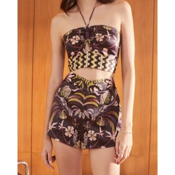 High-waisted shorts that features a V cut waistline , a side seam cutting detail and elasticated waistband with a zip on the back. The fabric pattern is from the Pina collection and has a smooth and glossy finish for a comfortable fit.
