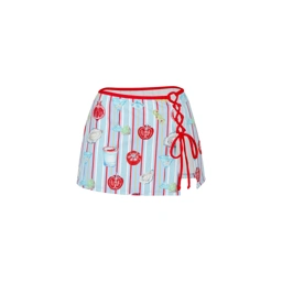 - The bikini cover-up skirt for extra confidence and playful styling! ✨ Made from high-quality, high-stretch, and UV-protective swimwear fabric. This piece stands out with a lively print inspired by the freshness of cocktails and fruits. It features a playful front lace-up tie detail that can be adjusted to fit your style. Available in two colors that perfectly match our bikinis for a flawless look."