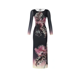 มอบลุคที่สวยสะกดตาด้วยเดรสแขนยาว Maxi ทรงเข้ารูปช่วงบนและค่อยๆปล่อยชายทรง A , เนื้อผ้า Mesh เนื้อละเอียดที่มีความยืดหยุ่นสูง พิมพ์ลายงานวาดดอกกล้วยไม้จากทางแบรนด์ โดดเด่นด้วยดีเทลที่เว้าด้านหลังจะมีความย้วยเบาๆ (Cowl-like effect) ทำให้ชุดดูมีมิติ ไม่ดูแข็งทื่อ พร้อมเพิ่มกิมมิคด้วย สายผูกเส้นเล็ก ที่ช่วยยึดทรงชุดให้อยู่ทรงสวย ให้ลุคดูเรียบหรูเย้ายวนใจในทุกองศา รุ่นนี้มี ทั้ง 2 ลายนะคะ Limited Edition