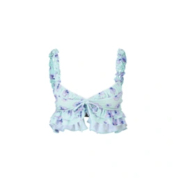 บิกินี่ลายดอกโทนพาสเทลดีไซน์หวานละมุน เหมาะสำหรับทริปทะเลหรือวันพักผ่อนที่อยากได้ลุคหวานอมเปรี้ยว ตัวเสื้อดีไซน์สายระบายพร้อมดีเทลผูกด้านหน้า เพิ่มความน่ารักให้ลุคดูขี้เล่นและมีเสน่ห์